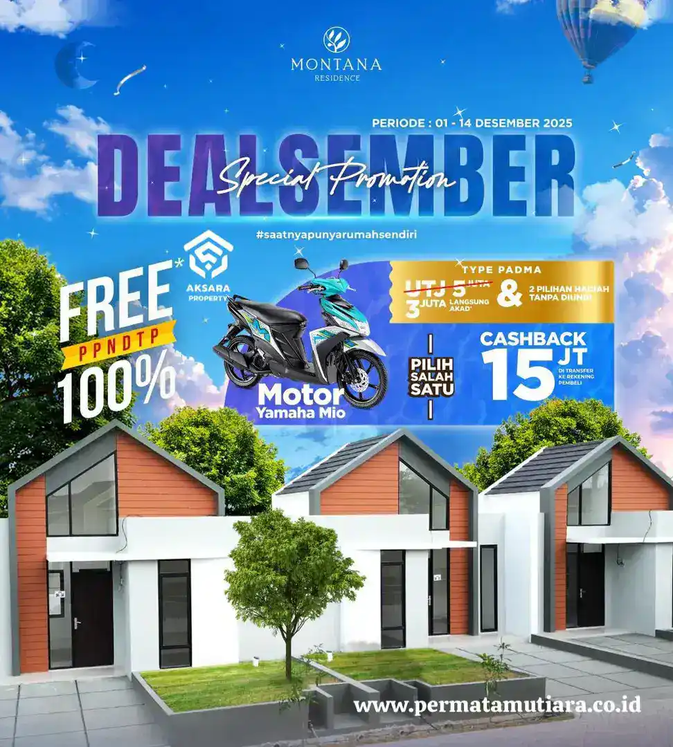 Permata Mutiara Maja hadir dengan promo terbesar akhir tahun agar kamu makin mudah punya rumah impian sekaligus bisa jadi referral partner resmi.